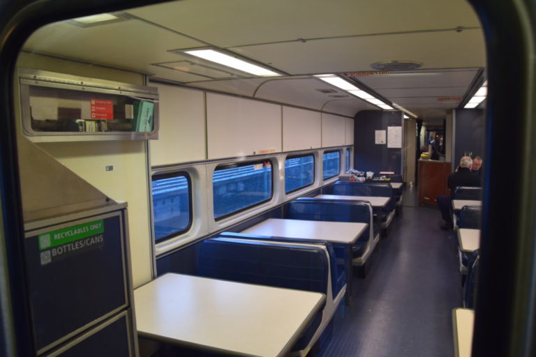 De reis is over het algemeen erg comfortabel. Je hebt grote brede stoelen. Die in de rijrichting gedraaid kunnen worden, of juist in een zitje van 4. De stoelen zitten goed en hebben ook enige recline. In de trein is een restauratiewagon. Hier kun je voor verschillende snacks en wat drinken terecht. Hier kun je betalen met contant geld (alleen Amerikaanse Dollars) en met betaalpassen. Je had bijvoorbeeld keuze uit pizza en wraps. Ook zijn er verschillende dranken aanwezig. Op deze website kun je het menu vinden.