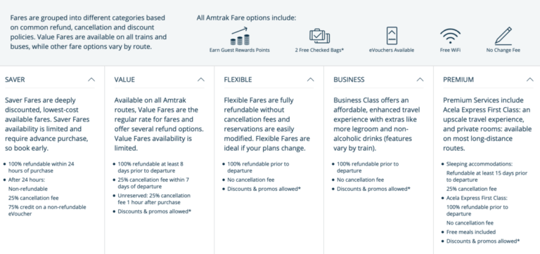 Het reserveren van de trein kun je op deze website van Amtrak doen. Tip: maak vooraf een account aan. Hier kun je de reis in terugvinden, maar ook de eerste genoemde Guest Rewards Points mee sparen.