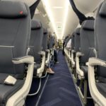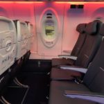 Na een korte vlucht met KLM naar Parijs en natuurlijk een bezoek aan de nieuwe Air France Lounge op terminal 2F mochten we boarden voor onze eerste A220 vlucht. Wat meteen opvalt: de Airbus A220-300 van Air France heeft een ietwat afwijkende indeling. De configuratie is namelijk 3-2, met in totaal 148 stoelen. In Business Class wordt aan beide kanten een stoel vrijgehouden voor extra comfort. Het formaat stoel en de voorzieningen zijn in beide reisklassen hetzelfde. Qua beenruimte is de rij bij de nooduitgang een positieve uitzondering. En rij 1 in Business.