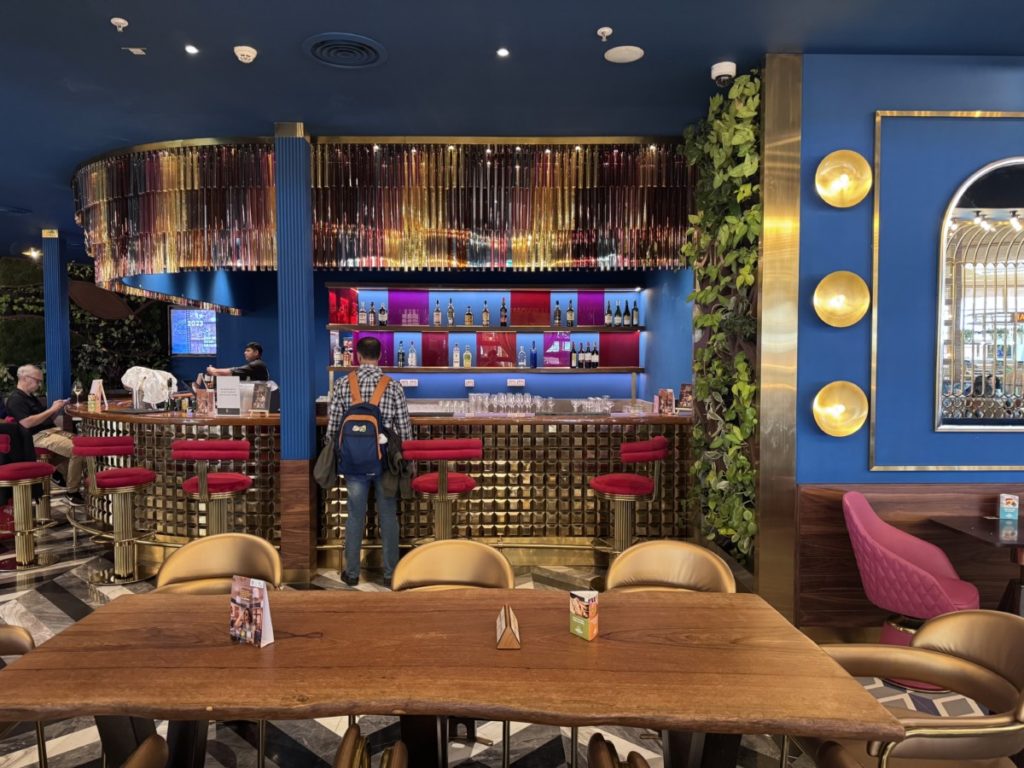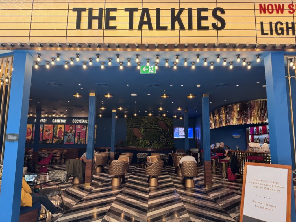 Bij de ingang links is er ‘The Talkies’, een speciale ruimte voor reizigers in Business Class of reizigers met een speciale uitnodiging van de airline. De ruimte doet denken als een Amerikaanse bar of bioscoop.