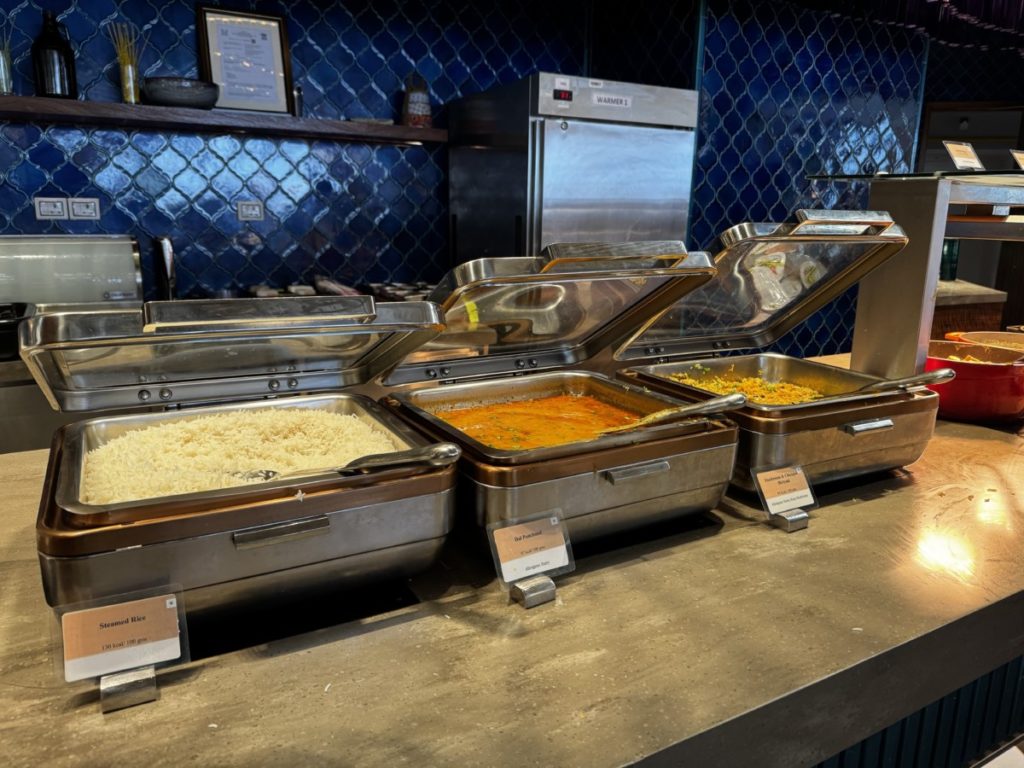 Bij het buffet is aanbod van verschillende Indiase gerechten, prima maar niet super uitgebreid. Van Indiase curry tot aan lekkere samosa’s.