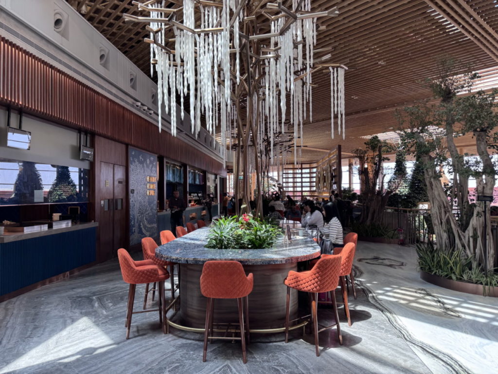 Aan de rechterkant van het centrale gedeelte is de Nicobar, wat trouwens niets te maken heeft met nicotine of roken. Nee, deze plek is een knipoog naar het meest zuidelijke eiland van de Andaman en Nicobar eilanden. Je treft er veel planten die uit dit gebied komen. Vanuit hier heb je verder een mooi uitzicht over de rest van de luchthaven.
