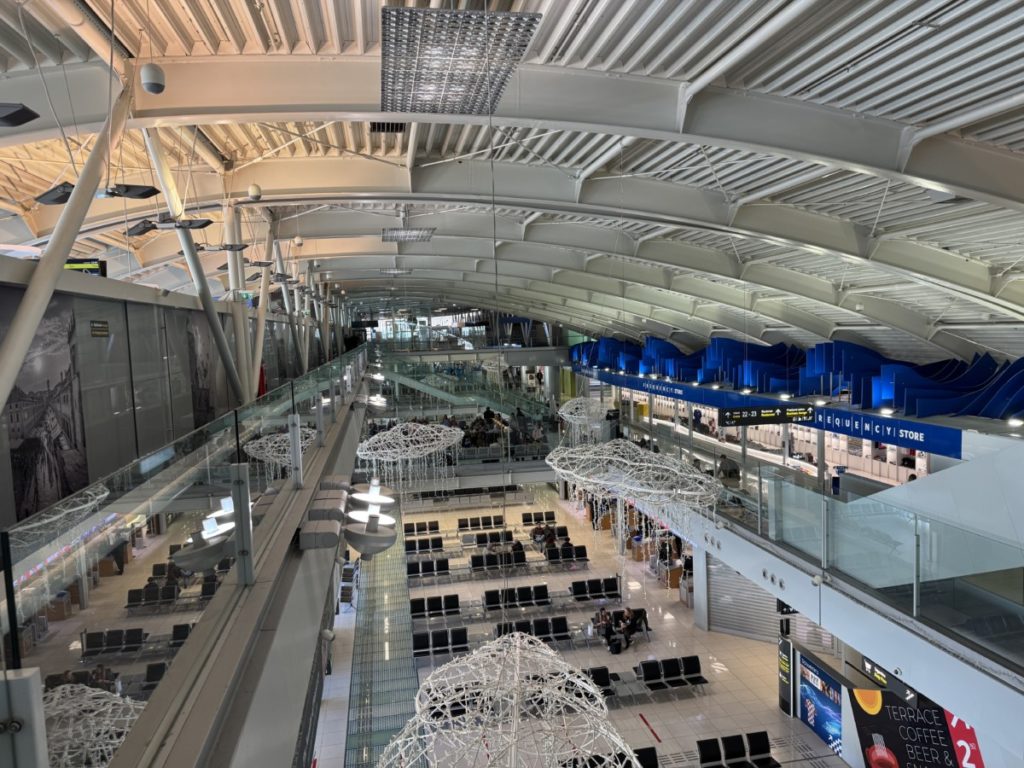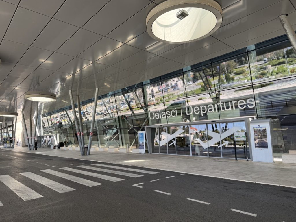 De luchthaven van Dubrovnik ligt niet bepaald dichtbij het centrum van de stad. Reken minimaal 45 minuten tot een uur reistijd om hier te komen. Ik had ervoor gekozen kunnen hebben om met de bus te gaan. Echter besloot ik een taxi te nemen. Hier geldt een vast tarief voor wat in april 2025 minimaal € 45,- en maximaal € 50,- is. Na een mooie taxirit langs de Kroatische kust werd ik keurig voor de luchthaven afgezet.