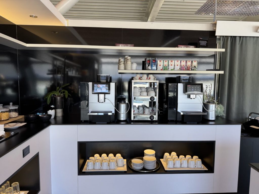 Voor wat betreft de warme dranken vind je er twee koffieautomaten. Hier nam ik een cappuccino die me verder goed smaakte. Aan de nadere kant van het buffet vind je een selectie aan koude dranken. De niet alcoholische dranken bestaan uit o.a. Cola, Fanta en flesjes water. Ook is er een aanbod van alcoholische dranken.