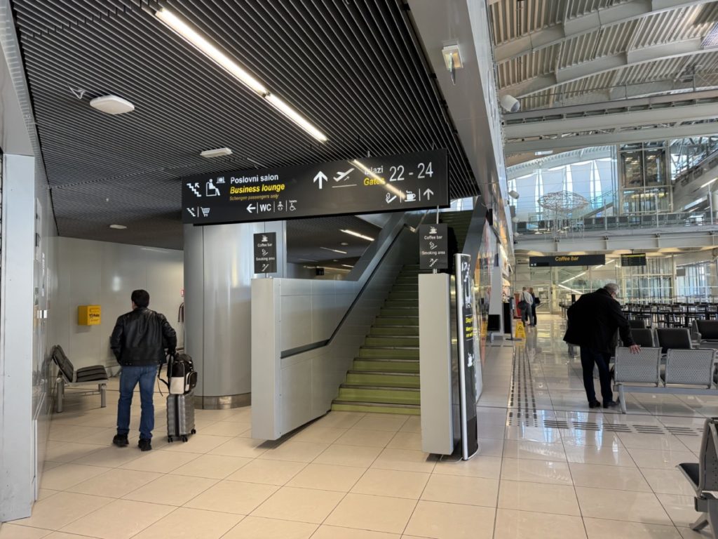Zoals eerder aangegeven hebben passagiers naar een bestemming in de Schengenzone toegang tot de Adriatic Lounge. Om hier te komen moet je wel een paar verdiepingen hoger zijn. Volg vanaf dit wachtgedeelte de aanwijzingen op de borden om bij de lounge te komen.