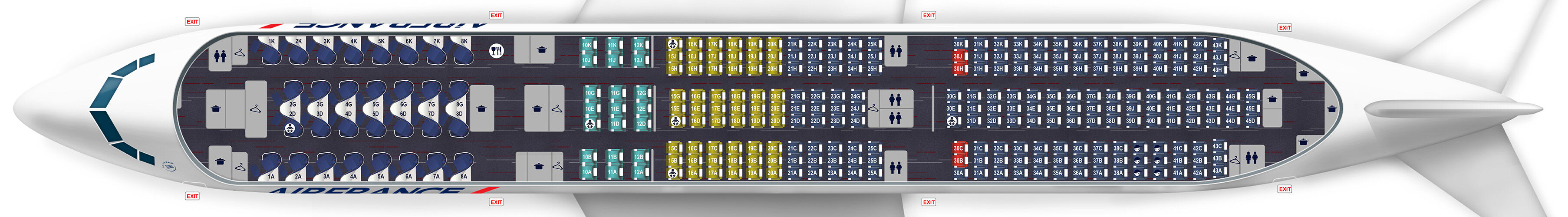De Boeing 787-9 Dreamliner van Air France is voorzien van 279 stoelen, verdeeld over 30 Business Class, 21 Premium Economy en 228 Economy Class plaatsen. De seat map kun je overigens hier bekijken op de website van Air France. Er is geen La Première (First Class), deze is alleen beschikbaar in sommige Boeing 777-300 vliegtuigen. In deze review over de Air France Boeing 787-9 Dreamliner ga ik verder in op de Economy Class cabine.
