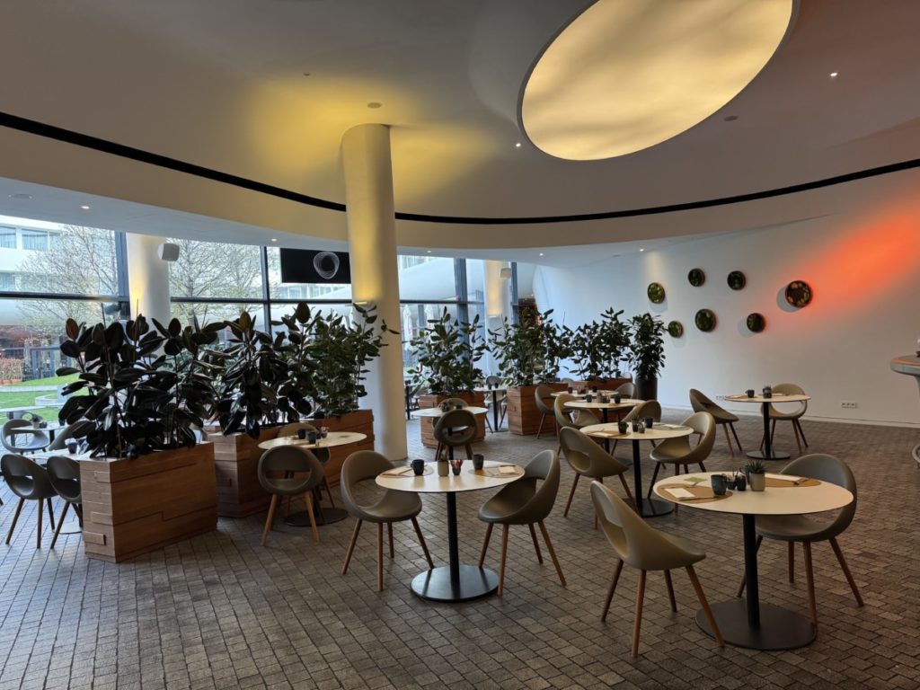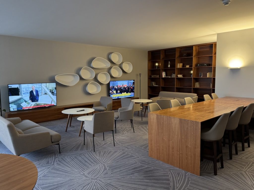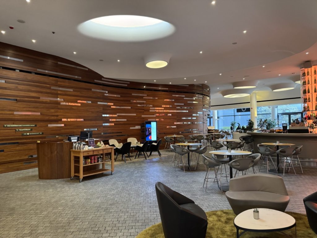 De volgende ochtend ging ik eerst maar eens kijken wat de Executive Lounge te bieden had. Ik was nog zo vroeg dat de lounge nog niet open was. Dit bood mij wel de gelegenheid om als eerste gast van de dag rustig wat foto’s te maken. Als je de lounge binnenkomt kom je direct terecht in wat lijkt als een huiskamer. Het is een gezellige ruimte waar je onder het genot van een hapje en drankje prima je tijd kan doorbrengen. Aan de linkerzijde kun je aan tafel zitten.