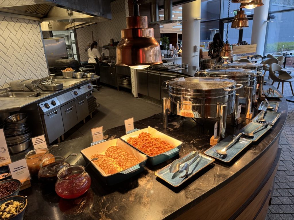 Over het ontbijt was ik zeker te spreken. Je vindt de ontbijtzaal trouwens naast de bar op de begane grond. Je kunt hier vanaf 6.30 uur tot 10.00 uur genieten van een heerlijk buffet. Als je geen status hebt moet je voor dit ontbijt betalen als dit niet bij de kamerprijs zit inbegrepen. Omdat ik Gold status heb kreeg ik het ontbijt er gratis bij. In de ontbijtzaal is er net zoals elders in het gebouw gebruik gemaakt van mooie decoratie.