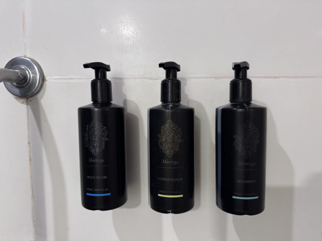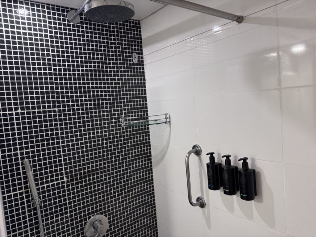 De inloopdouche heeft zowel een hand- als regendouche. De waterdruk is goed en de temperatuur is constant. Dat ook de badkamer wat gedateerd is zie je in de douche goed terug. De kalkaanslag is duidelijk zichtbaar en de tegels zijn niet meer helemaal schoon. Niet wat ik van een Grand Mercure zou verwachten.