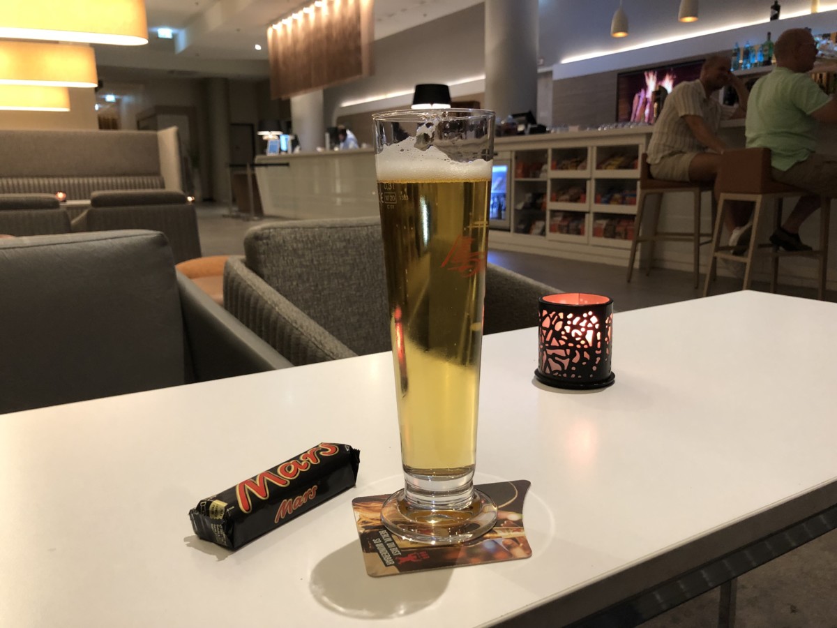 Na nog wat werk gedaan te hebben besloot ik rond 22:00 maar eens gebruik te maken van mijn voucher voor een gratis drankje aan de bar in het restaurant. De bar is mooi ingericht en op het moment dat ik er was bleek het niet heel druk te zijn. Met de voucher had ik toegang tot een gratis drankje en een snack in de vorm van een zakje ships of chocolade reep. Ik besloot voor een lokaal biertje en een Mars te gaan.