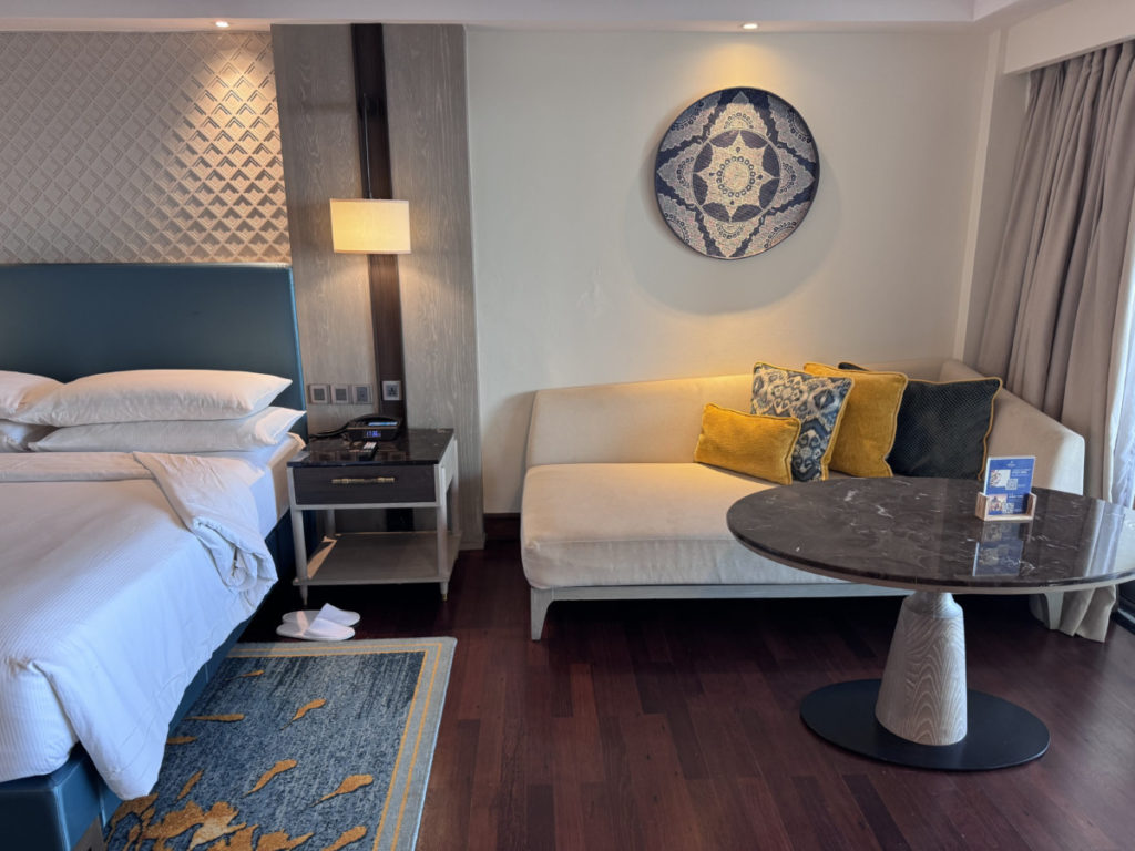 Het Hilton Bali Resort is met meer dan 400 kamers aardig groot. Gelukkig worden we na de check-in persoonlijk naar onze kamer begeleid. De meest Executive Rooms bevinden zich in de Cliff Tower. Deze toren bevindt zich, zoals de naam al doet vermoeden, naast de kliffen en biedt een prachtig uitzicht op de oceaan.
