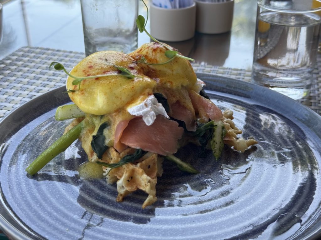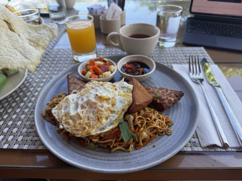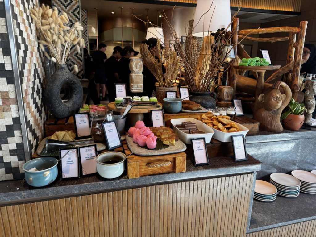 Restaurant Grain is aardig groot en heeft zowel een binnen- als buitengedeelte. Op de piektijden kan het wel erg druk zijn. Mijn advies is dan ook op wat vroeger te gaan, of in de lounge te ontbijten als je toegang hebt. Verderop in deze review over het Hilton Bali Resort ga ik nog in op de lounge.