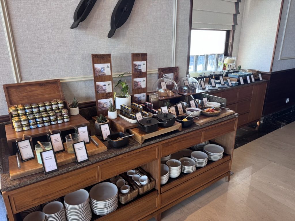 Het grote voordeel van de lounge is de persoonlijke en vriendelijke service. En het feit dat het er gewoon een stuk rustiger is dan bij de restaurants op het resortgedeelte. Vooral het ontbijt is hier een verademing, gezien de drukte op de piektijden bij Restaurant Grain.