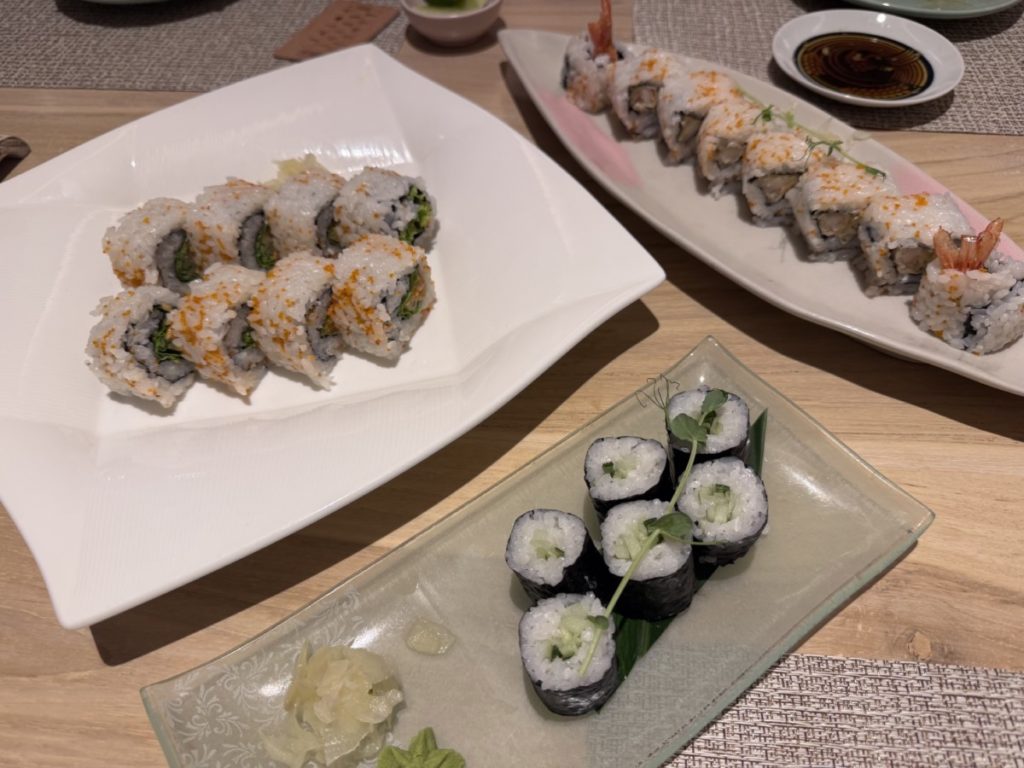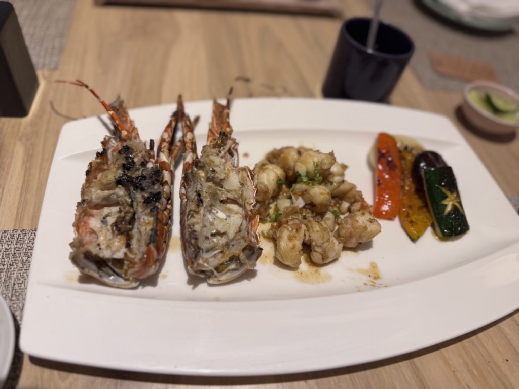 Eén avond genoten we op uitnodiging van het hotel van de Japanse keuken bij restaurant HamaSei. Dit restaurant is de meest recente toevoeging aan het aanbod. De sashimi is vers, perfect gesneden, en de lichte sojasaus haalt de smaakt zeker op. De wortel en witte kool zijn als garnituur passen ook heel goed. Op aanraden van de bediening namen we ook de zalm gemarineerd in teriyaki die prima smaakt.