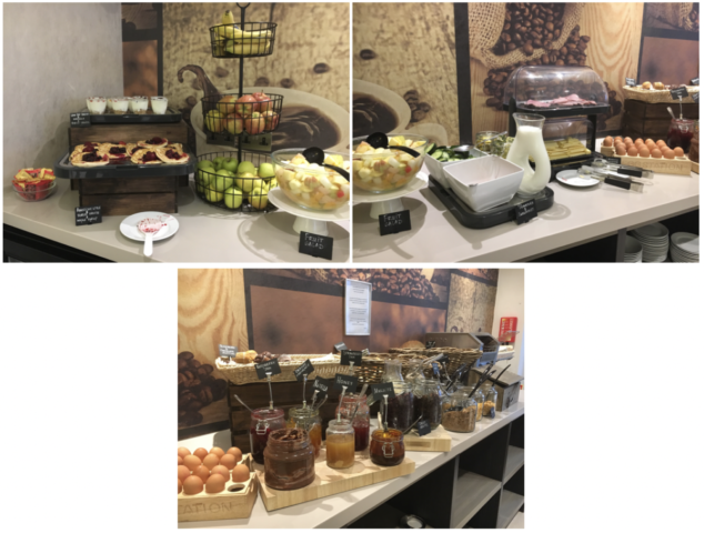 Review - Ibis Styles London KensingtonAchterin de ruimte staat het buffet met verschillende ontbijtitems. Je kunt kiezen uit verschillende fruitsoorten, ontbijtgranen en yoghurts. Ook zijn waren er lekkere pancakes aanwezig. Er is ook brood en wat beleg aanwezig. Er staan ook automaten waar je kunt kiezen voor koffie en thee, of een automaat met fruitsappen.