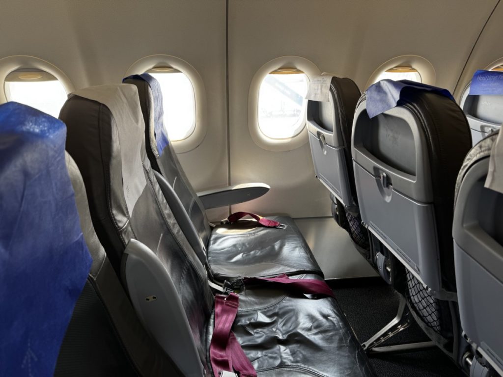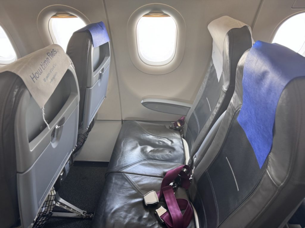 Pluspuntje is wel dat we zonder bijbetalen naar XL Seats in rij 12 mochten verplaatsen. Dit zijn de stoelen bij de nooduitgang waarvoor je normaal bij moet betalen. De beenruimte in rij 11 was overigens ook wel zeer beperkt.