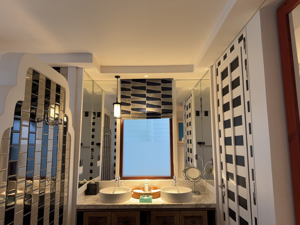 Overigens is er ook buiten en badkamer gedeelte, toegankelijk vanuit de hotelkamer. Hier staat een mooi ligbad en is ook een douche. Ook handig om buiten je zwemkleding en snorkelspullen af te spoelen.