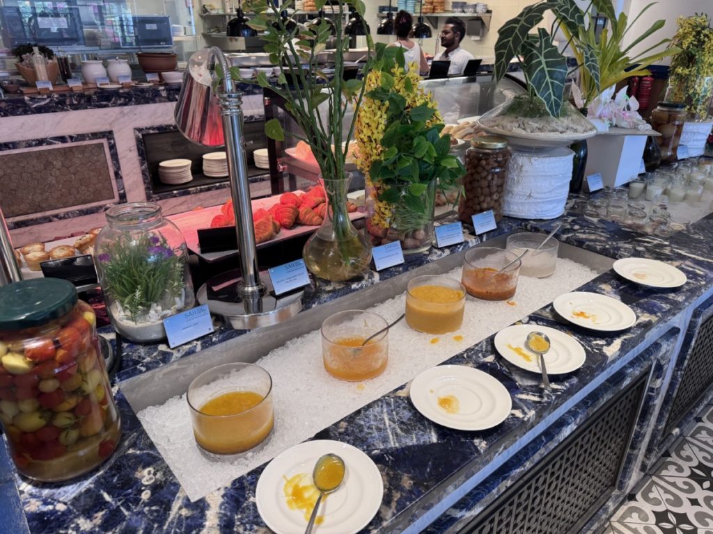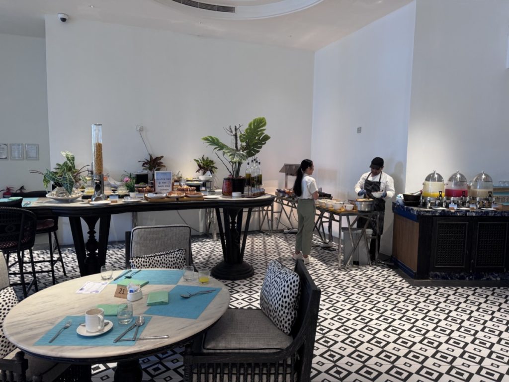 Het ontbijtbuffet bij Terra & Mar is uitgebreid en goed verzorgd. Gasten kunnen gebruikmaken van zowel een warm als een koud buffet. Hier vind je onder andere vers fruit, diverse salades, pancakes, wafels en zelfs lokale gerechten die apart gepresenteerd worden. Er is een ruime keuze aan verse fruitsappen en ook aan vegan opties is gedacht. Het restaurant zelf is stijlvol aangekleed en doet qua sfeer denken aan het Marriott Beach Resort op Curaçao. Voor wie de dag feestelijk wil beginnen, is er (tegen bijbetaling) zelfs een glaasje champagne verkrijgbaar.