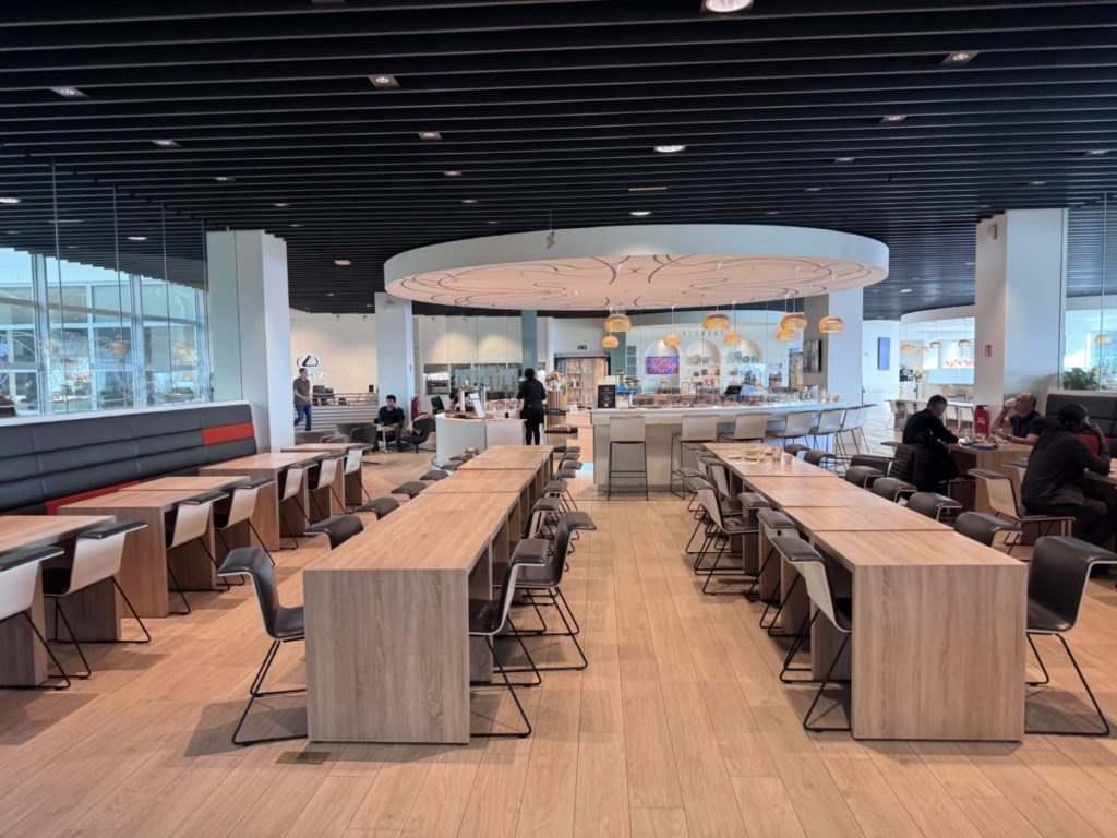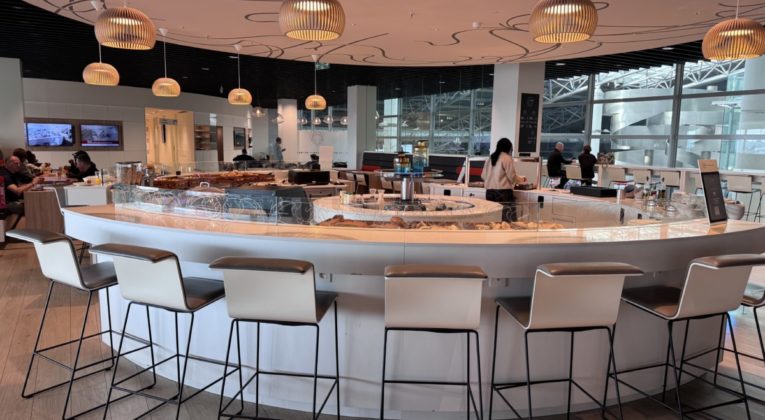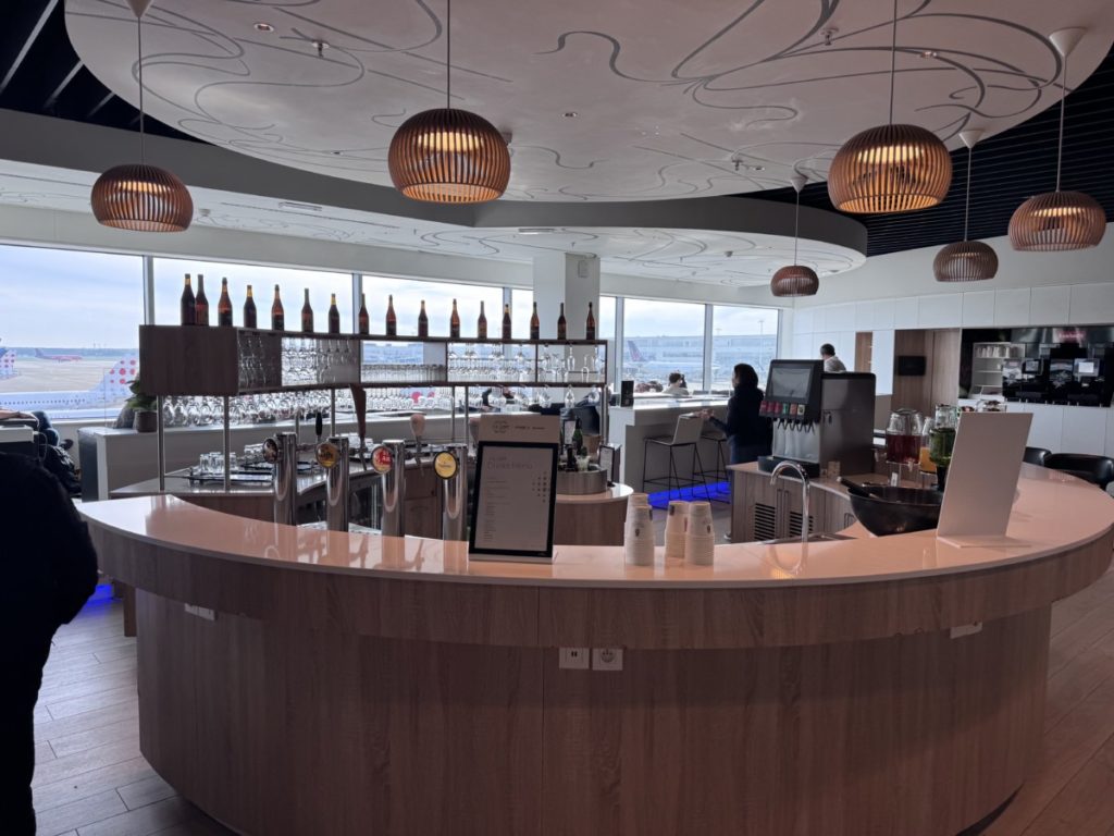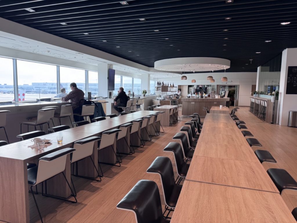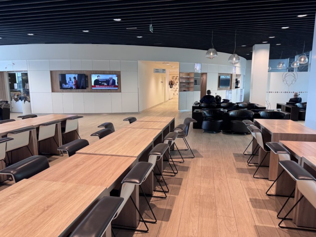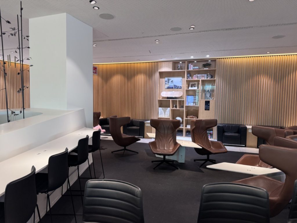 Deze lounge in Pier A heeft al meerdere prijzen gewonnen, waaronder die van “Europe’s Leading Airline Lounge in 2022 en 2024’. En dat de lounge het goed doet op verschillende gebieden is al snel zichtbaar. Het is een zeer moderne lounge.