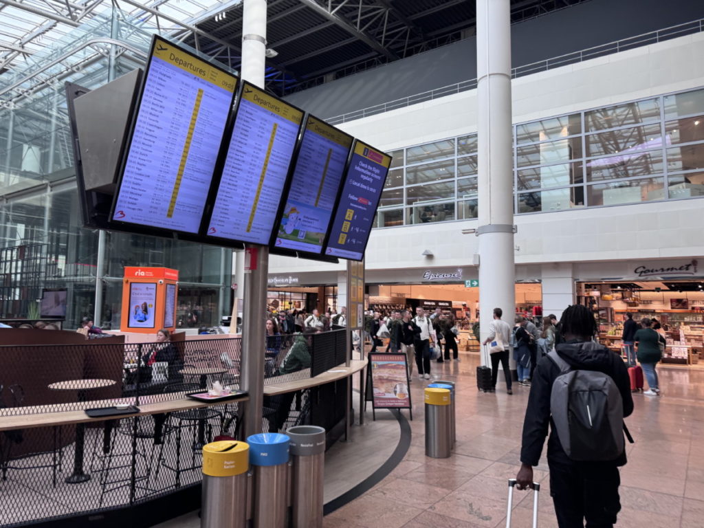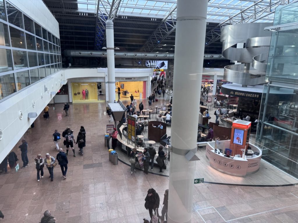 Aan de andere raamzijdes heb je uitzicht op de winkels van de luchthaven.