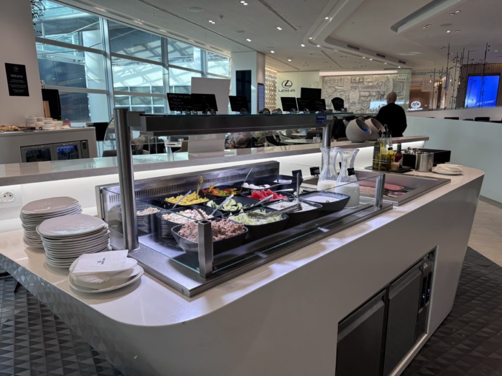 Wanneer je rechtdoor gaat na de ingang, kom je bij het buffet. Later in deze review van The Loft by Lexus op Brussels Airport gaan we daar verder op in.
