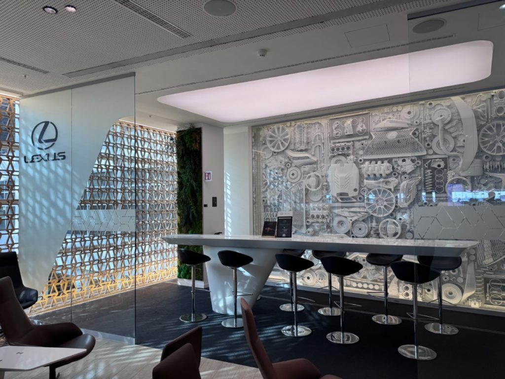 Tot slot is er een soort van Lexus bar in The Loft. Hier is een wand vol met onderdelen van een Lexus auto te vinden in een kunstwerk.