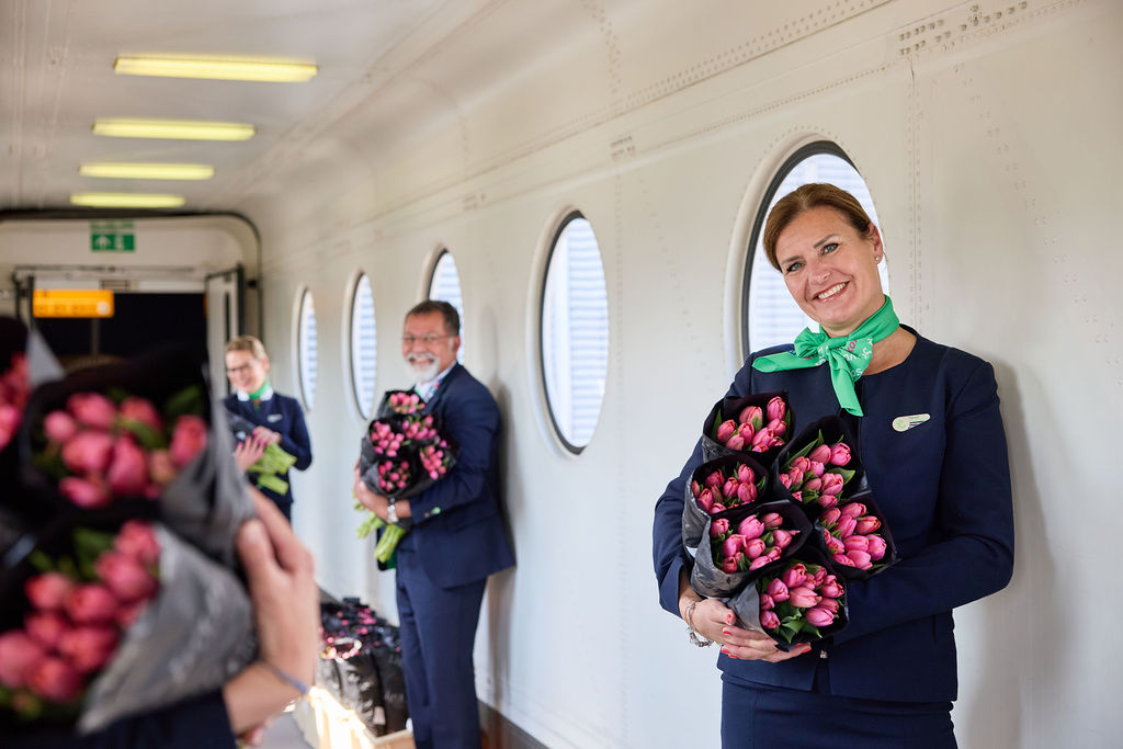 Op een van de eerste vluchten van het vliegtuig met de nieuwe livery kregen passagiers ook een bosje Premier Amour tulpen uitgereikt. Het gaat om de HV1042 die van Heraklion naar Amsterdam vloog. De tulp staat volgens Transavia symbool voor de gezamenlijke ambities met Sunweb.