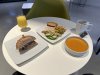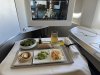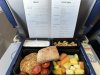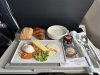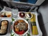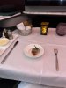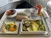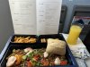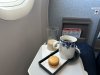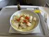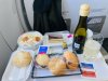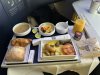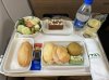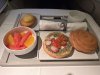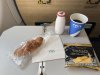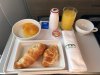 Metalen bestek met Alitalia logo nog achterop. Vers fruit en een gevulde croissant en eentje belegd met ham. Yoghurtdrink oogde wat goedkoop maar de jus en de koffie (die moest nog worden ingeschonken op de foto