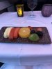 De broodjes waren op zich wel oke maar niet echt gepast voor een diner. Sla met zalm was lekker. Wijn smaakte goed en het chocolade taartje was heerlijk.