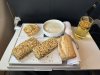 Warme croissant, koffie en weer de actimel. Verder nog de keuze uit koekjes of Italiaanse crackers.