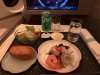 Op de Europese Businessclass van onze blauwe vrienden toch best lekker gegeten. Een van de betere Wanders-boxen. Pasta pesto. Het appelsapje ook verrassend lekker. Drankjes werden in de galley geschonken, maar volgensmij is het Appelsientje troebel. In economy wordt appel'drank' uit pakken geserveerd; iets wat met water en suiker is aangelengd iig.