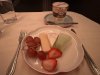 BON-AMS Het voorgerecht met gerookte zalm staat nu al minimaal een jaar op het menu op deze route. Smaakt op zich prima, maar wel jammer dat KLM geen lokale vis gebruikt, lijkt me ook wat duurzamer dan zalm importeren. De presentatie van het hoofdgerecht was ook weer smakelijk…